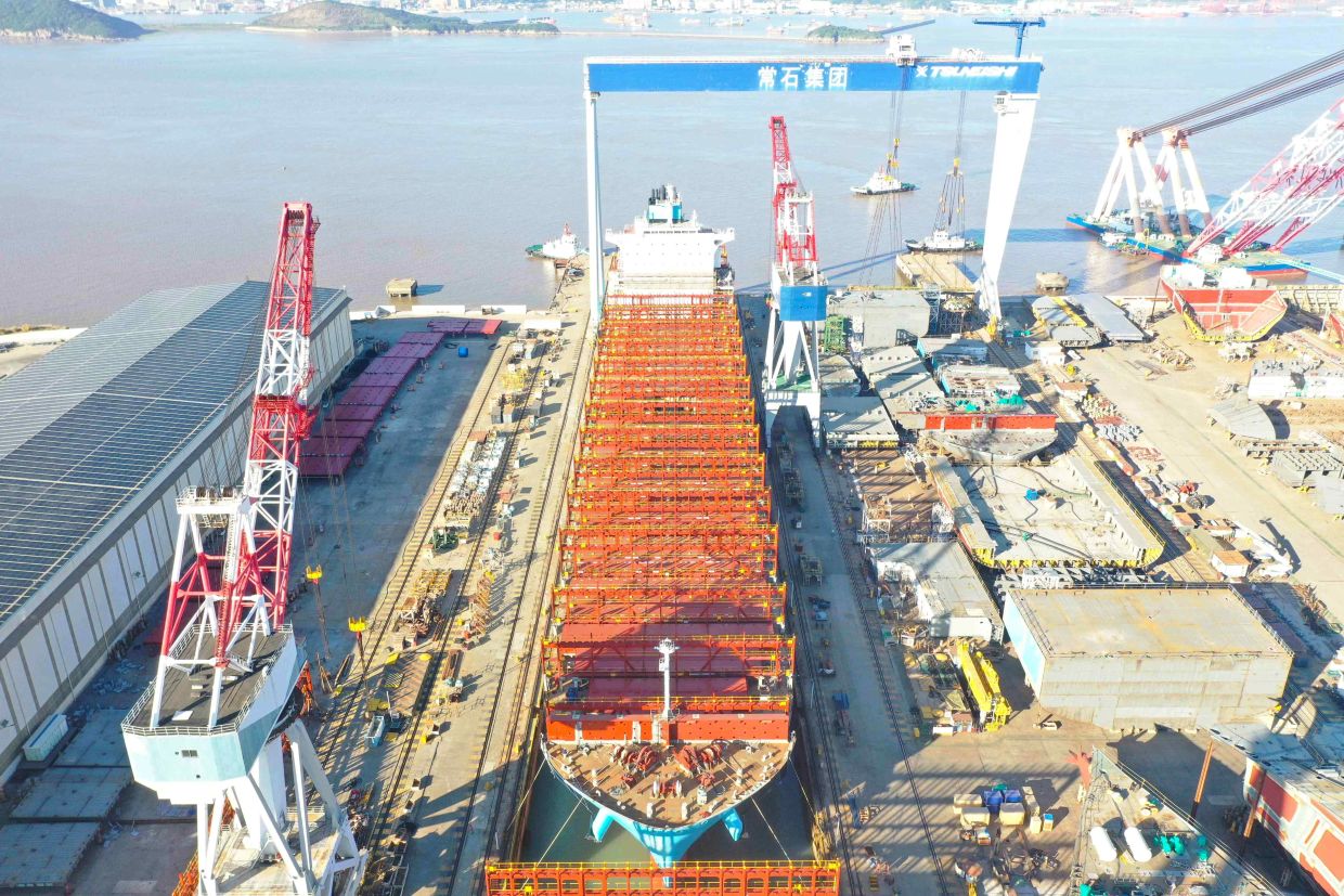 常石造船株式會(huì)社(總部:廣島縣福山市,法人代表:董事長(zhǎng)兼社長(zhǎng)執(zhí)行董事 奧村幸生)在其中國(guó)造船基地——常石集團(tuán)(舟山)造船有限公司(以下簡(jiǎn)稱(chēng)TZS)建造的首艘甲醇雙燃料5,900 TEU集裝箱船,該船已于2025年8月27日下水,預(yù)計(jì)2026年2月竣工。